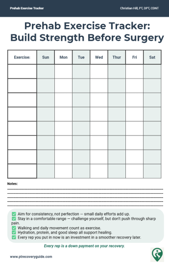 That’s why I put together two free and simple tools to make prehab easier. They’ll help you stay organized, track your progress, and feel more confident heading into surgery.